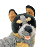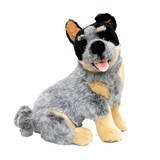 Bluey, our most popular Blue Heeler or Australian cattle dog stuffed toy in the range.  He is a small sitting lifelike Australian Cattle Dog/Blue Heeler puppy.  From his realistic faux fur, coloured exactly like a Blue Heeler, to the intricate yet cute facial features designed by the best in the business, Bocchetta Plush, everything about this puppy screams "ideal gift" for the lovers of this Aussie dog icon.