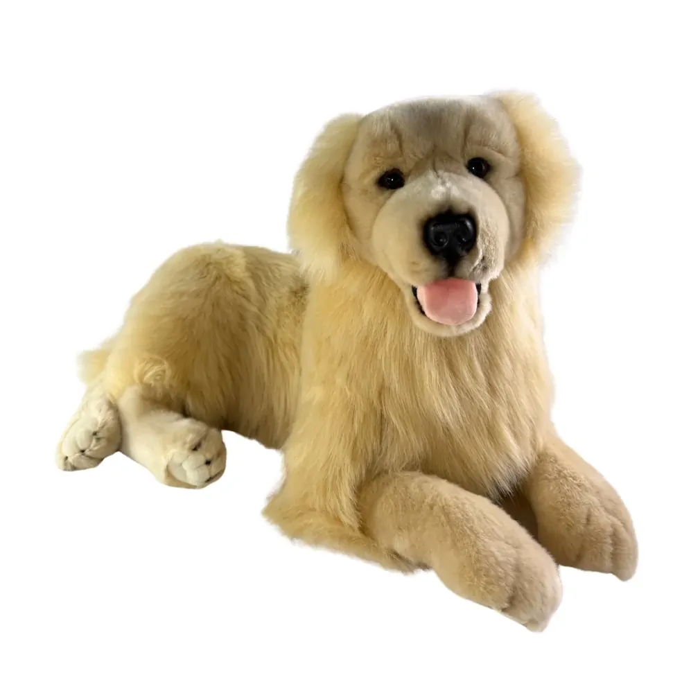 Spencer is a beautiful extra large soft and cuddly lying Golden Retriever by Bocchetta Plush Toys.  Exceptional quality. He represents great value with the inexpensive shipping we offer.
