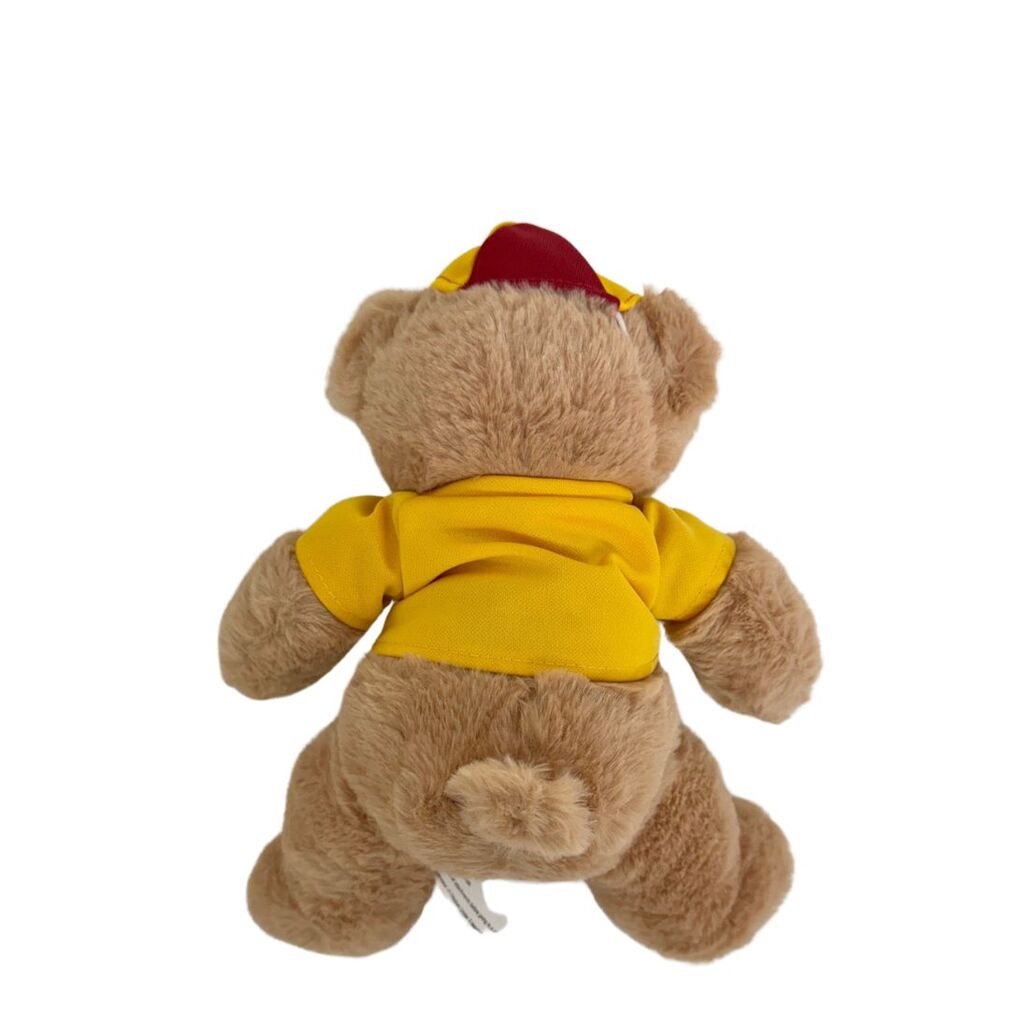 Life Saving soft plush teddy bear dressed in the traditional Australian surf rescue uniform, with yellow t-shirt, and red and yellow matcing cap  All clothes are removable.