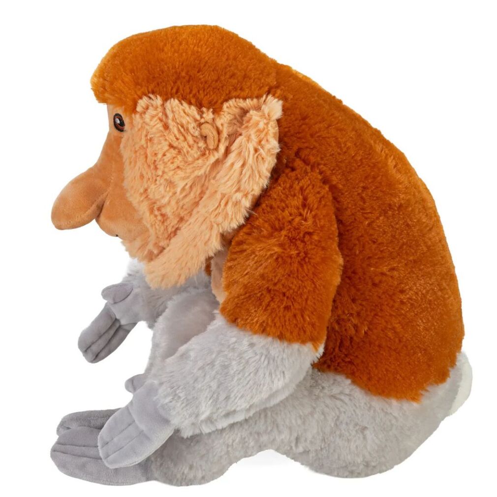 The Proboscis Monkey's nose can grow as long as seven inches, making it one of the largest noses in the animal kingdom. Their big noses serve as a visual signal of health and dominance to other proboscis monkeys.  Bring this monkey stuffed animal home for real jungle fun!